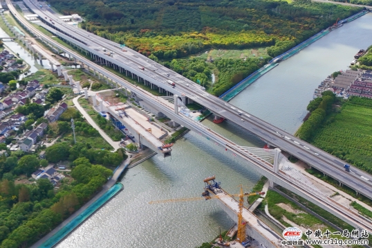 國內市域鐵路最大跨度連續混合梁橋建設現場(孫震 供圖)
