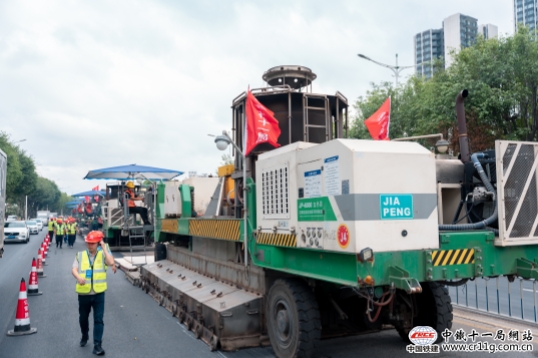 公常路改造項目路面攤鋪施工現場(孫震 供圖)